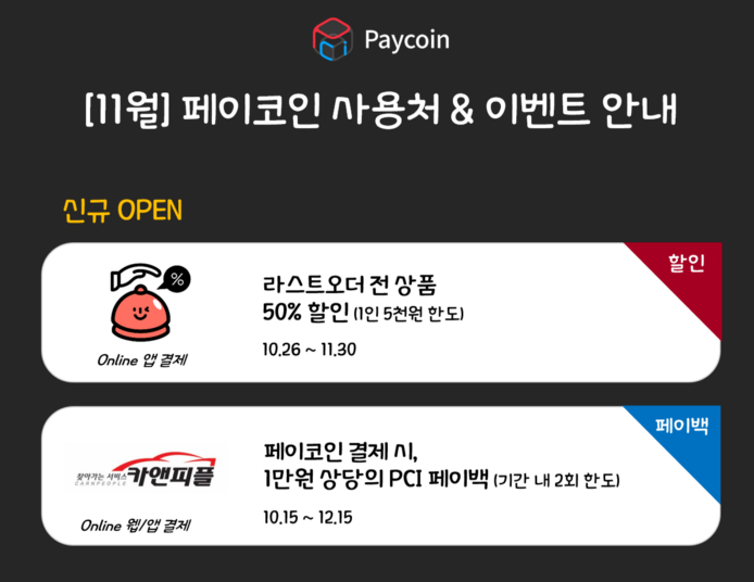 페이코인 2021 11월 사용처 & 이벤트 총정리