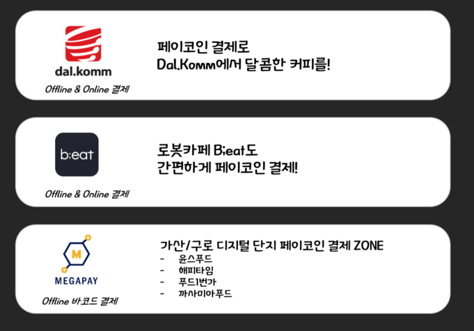 현재 페이코인은 국내 최초의 상용 결제 가상자산으로써 사용되고 있으며,